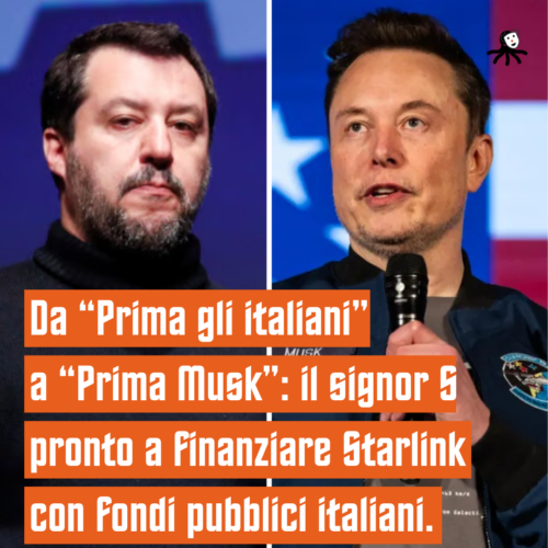 Da “Prima gli italiani” a “Prima Musk”: il signor S pronto a finanziare Starlink con fondi pubblici italiani.