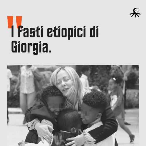 Il signor Presidente del Consiglio in visita ad Addis Abeba rilancia il misterioso “piano Mattei” che dice verrà presentato a ottobre in un – nientemeno – “summit Italia-Africa”. In attesa che questo piano vada oltre i post su Facebook, intanto tuttora strade, piazze e monumenti in tutta la nazione sono intitolate e dedicate alla guerra imperialista del fascismo in Etiopia.