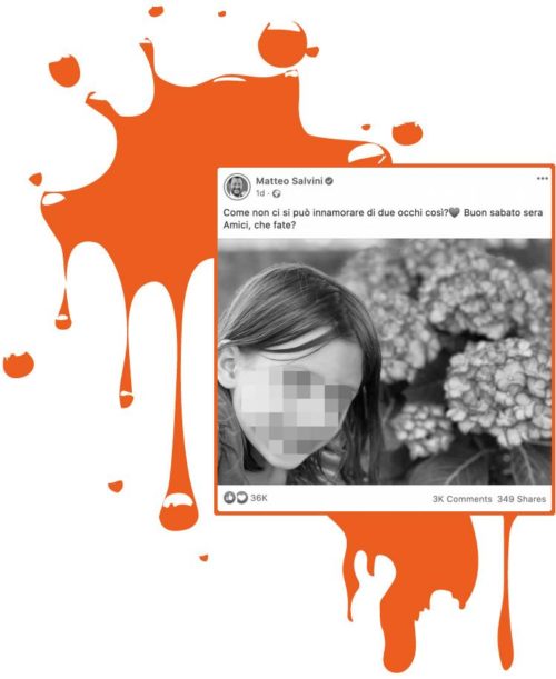 1) per l’ennesimo uso dell’immagine di una bambina di otto anni (che noi oscuriamo) in una pagina di propaganda politica;