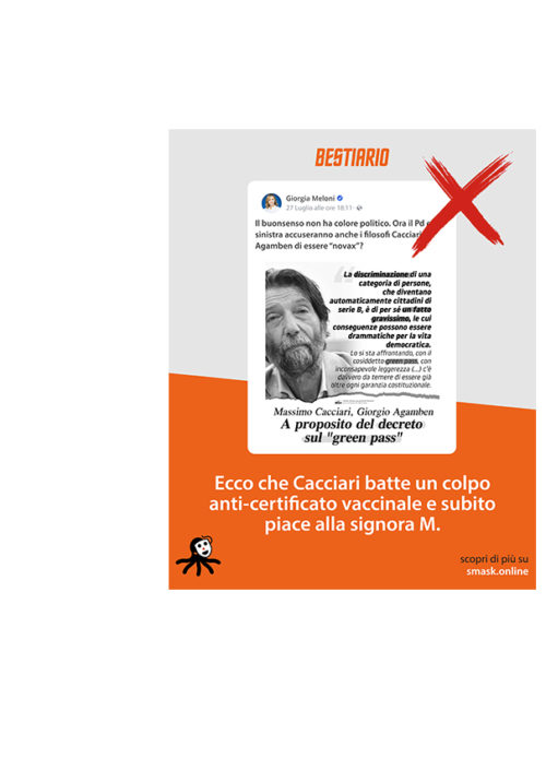 BESTIARIO: Ecco che Cacciari batte un colpo anti-certificato vaccinale e subito piace alla signora M.