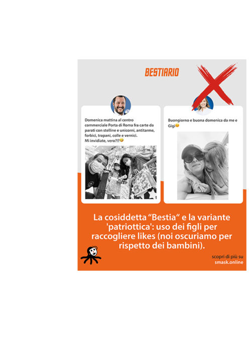 BESTIARIO: La cosiddetta “Bestia“ e la variante ‘patriottica’: uso dei figli per raccogliere likes (noi oscuriamo per rispetto dei bambini).