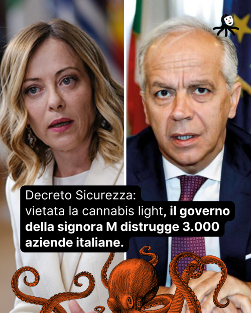 Decreto Sicurezza: vietata la cannabis light, il governo della signora M distrugge 3.000 aziende italiane.