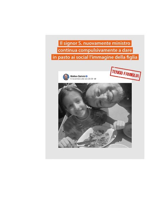 In 7 giorni, dal 30 ottobre al 5 novembre, la “Bestia” ha condiviso 3 volte l’immagine della figlia del signor S., una bimba di 9 anni. Neppure da ministro, che dovrebbe aver ben altre priorità che quelle di imbonirsi i fan, la smette di usare l’immagine della figlia.