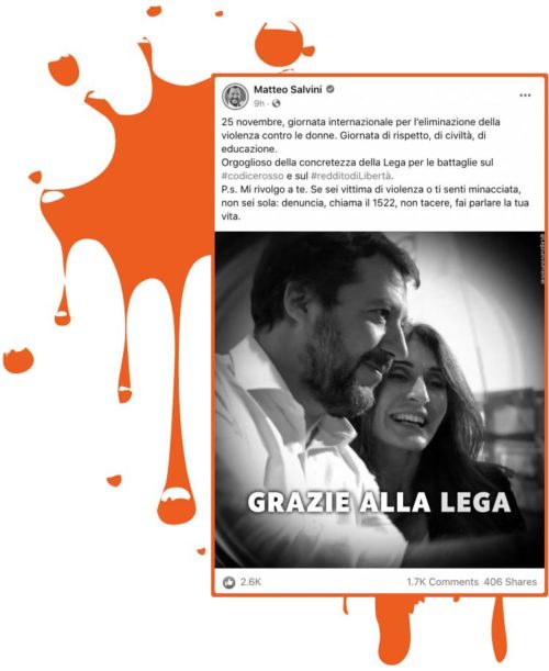 Il signor S. posta “grazie alla Lega” per la giornata internazionale per l’eliminazione della violenza contro le donne.