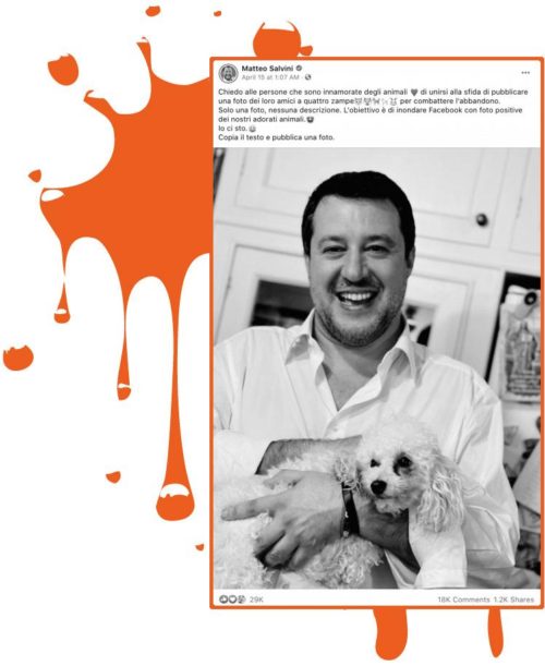 La cosiddetta “Bestia” sa che gli animali (soprattutto da compagnia) sono molto condivisi sui social. “Effetto cane”? Per una foto del signor S. 15mila like in più male non fanno.