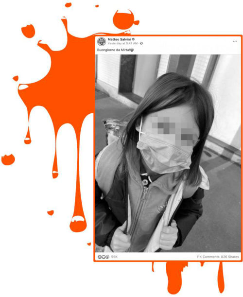 La cosiddetta “Bestia”, la ditta che come cliente ha il signor S. è implacabile, ha bisogno di immagini sempre fresche di questa bambina. 11 ore dopo i likes sono 82293, i commenti oltre diecimila.