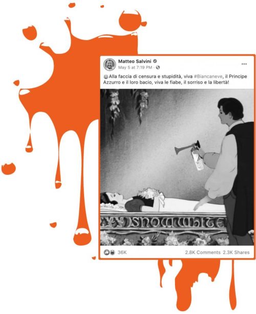 “Le polemiche sul bacio di Biancaneve non hanno ragione di esistere […] E il problema non è solo la polarizzazione social, ma anche un sistema dell’informazione malato”. Il sistema di algoritmi e likes in cui si muove la cosiddetta “Bestia”, che dedica più di un post a questa non notizia. Tutto nasce da “due giornaliste di un giornale americano online, SF Gate, dove SF sta per San Francisco (si tratta, dunque, di una testata di portata locale)”, che “recensiscono la nuova attrazione di Disneyland dedicata a Biancaneve”, neanche la favola! È Il loro punto di vista, ma “tale semplice opinione, però, rimbalzata di titolo in titolo, di giornale in giornale, da una sponda all’altra dell’Atlantico, è divenuta un polverone di proporzioni incontrollabili”, tipo: “Non possiamo neanche più raccontare le fiabe ai nostri bambini!” (fonte: Paolo Armelli, Wired, 5 maggio 2021). Ancora una volta “loro”, che in verità è: due persone…