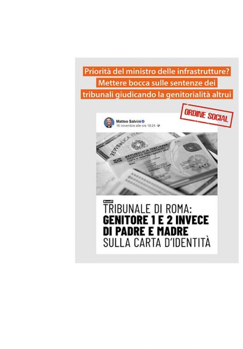 Priorità del ministro delle infrastrutture? Mettere bocca sulle sentenze dei tribunali giudicando la genitorialità altrui