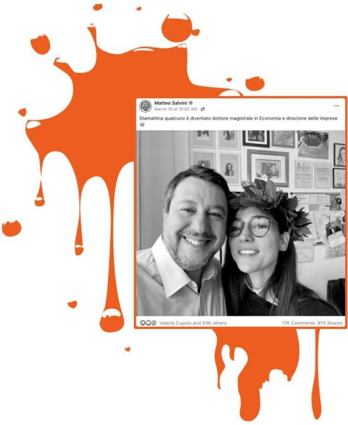 La cosiddetta “Bestia” non ha resistito all’occasione e propone l’immagine della fidanzata del signor S, fino a ieri studentessa, ed oggi cinta di alloro. Piovono 13594 commenti. Però succede un piccolo incidente social. Un fan scrive “È sempre bellissimo vedere l’orgoglio dei padri quando i figli si Laureano! Complimenti vivissimi a tua figlia” (760 likes a questo commento). Segue una marea di esilaranti discussioni: