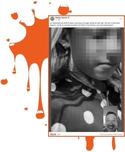Ma la cosiddetta “Bestia” schiera a difesa del cliente un primo piano (che noi oscuriamo) della figlia, otto anni. Il cliente dichiara: “Le telefonate più difficili dopo il processo di oggi, quelle ai miei figli”. Una fan scrive: “Piccola ma è sul punto di piangere?”. L’imputato ha un avvocato di spicco, è a capo del maggiore partito d’Italia che governa nella maggioranza delle Regioni e che fa parte del governo, ha una ditta di comunicazione politica chi gli ha gestisce circa oltre sei milioni di followers fra Facebook, Instagram, Twitter, Tik Tok, Telegram. Ha proprio bisogno di pubblicare il primo piano di questa bambina, e di esporla in relazione ad un processo penale per impietosire i fan? Che cosa ne pensate?
