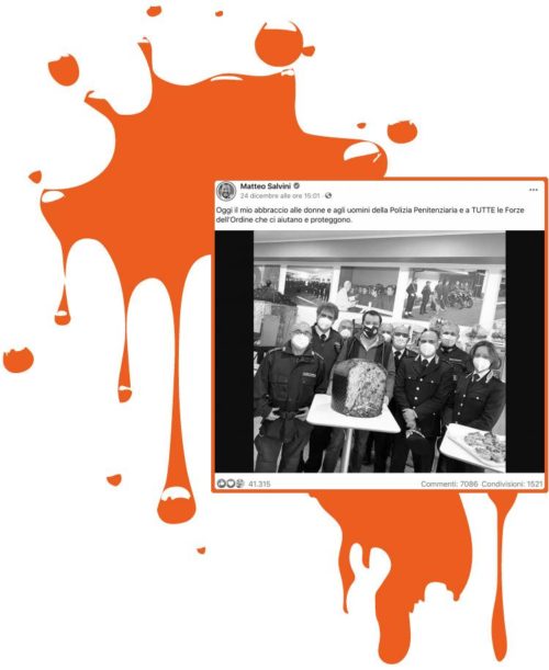 Sono questioni importanti. Il post ritrae un politico, ex ministro dell’Interno (la polizia penitenziaria dipende dal Ministero della Giustizia), che ostenta una mascherina col simbolo di partito.