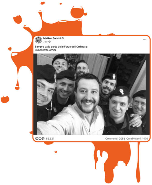 Ancora più grave quando il personaggio politico si traveste da poliziotto e usa questa immagine sui social media. Non a tutti i poliziotti questo gioco propagandistico piace: “Da poliziotto e da sindacalista di polizia, ma prima ancora da cittadino, ritengo che sia profondamente sbagliato che un esponente politico si appropri di simboli e stemmi di un corpo dello Stato che in quanto tale è al servizio del cittadino—di qualunque orientamento sia”.