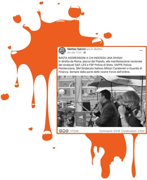 Il cosiddetto Capitano non si perde la manifestazione di un certo schieramento sindacale delle forze di polizia. Ma non sono tutti i sindacati e nemmeno i più rappresentativi. Ad esempio SAP (Sindacato Autonomo di Polizia) sulla sua homepage posta un video con Mario Giordano, in cui però il giornalista compare nel ruolo dell’intervistato, e gli vengono fatte domande sul tema del “partito dell’antipolizia”.