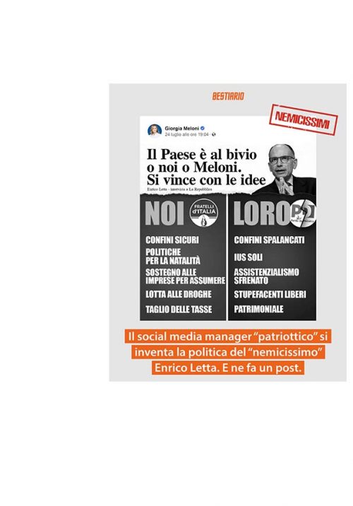 BESTIARIO: Il social media manager “patriottico” si inventa la politica del “nemicissimo” Enrico Letta. E ne fa un post