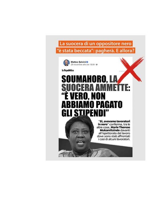 Tutti evasori da “riportare” dove? Di questo niente, addosso alla suocera nera del parlamentare nero. I bianchi non evadono nei social media dei signori S&M (in particolare).