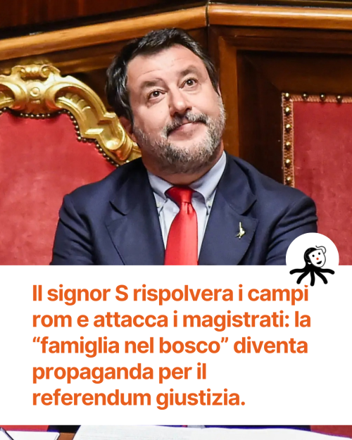 Il signor S rispolvera i campi rom e attacca i magistrati: la “famiglia nel bosco” diventa propaganda per il referendum giustizia.