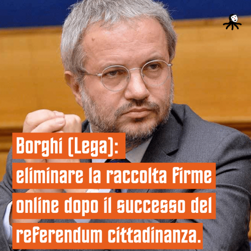 Referendum cittadinanza, ora il leghista Borghi vuole abolire la raccolta firme online (fanpage.it)