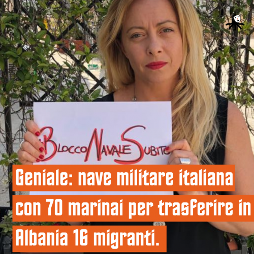 Geniale: nave militare italiana con 70 marinai per trasferire in Albania 16 migranti.
