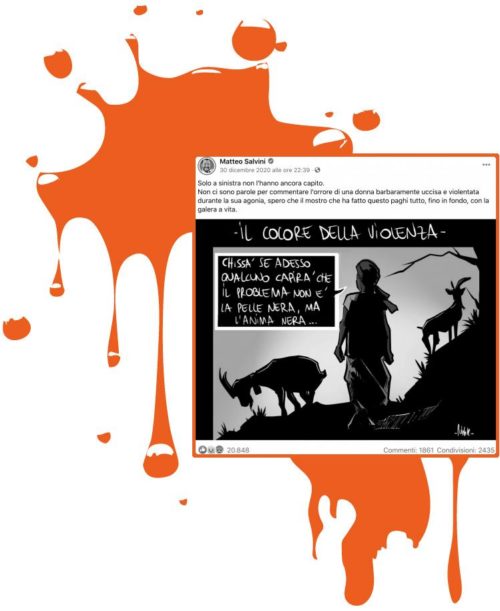 Lo spiega subito sopra il testo pubblicato dalla cosiddetta “Bestia”: “Solo a sinistra non lo hanno ancora capito”. Rileggiamo bene, anche due o tre volte. Si sta usando l’assassinio di questa donna per accusare “la sinistra” di che cosa? Di non volere ammettere che fra in neri ci sono degli assassini? Quale “sinistra” (o quale “destra”) ha mai detto una cosa del genere?