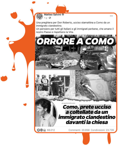 Le parole di pietà per la vittima sono gocce nel mare di odio. Si suppone che molti di questi studenti della Bestia si dicano Cristiani. Ma sono ciechi e sordi. Non capiscono perché e per chi quel prete è morto. La bestia prima scrive “immigrato clandestino” poi aggiunge: “un pensiero per tutti gli Italiani e gli immigrati per bene”. Ma il messaggio è stato recepito dai followers che rispondono a tono. Diciottomila in poche ore. Il loro dio è un predicatore di odio, quell’altro sulla croce se l’è andata a cercare.