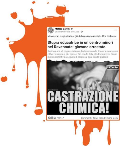 La “castrazione chimica”, evocata più e più volte dal cosiddetto Capitano, rimanda a “un immaginario di vendetta alla Kill Bill, un’idea di giustizia basata sull’occhio per occhio (quanto di più lontano da uno stato di diritto o da una democrazia come quella italiana), quando in realtà è una procedura reversibile e volontaria”.