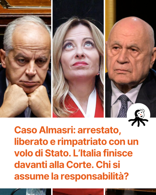 Se esiste un mandato di arresto internazionale per crimini contro l’umanità, con quale criterio uno Stato decide di non rispettarlo? E come si spiega che una persona accusata di torture, stupri e omicidi venga fermata… e poi rimessa in libertà e accompagnata fuori dal Paese da uomo libero? Il governo e i ministri competenti, a partire da Nordio, Piantedosi e la signora M, chi si assume la responsabilità?