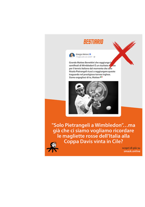Solita tecnica di appropriarsi di successi altrui per ottenere likes. Ma visto che si parla di storia dello sport, ricordiamo la Coppa Davis del 1976, disputata e vinta dalla squadra italiana nel Cile del golpista Pinochet. In quel caso Pietrangeli era capitano non giocatore, e sulla dittatura cilena aveva posizioni ambigue (anche in una recente intervista televisiva “io non sono ‘politico’ non mi frega niente della politica, però in quel momento la sinistra non aveva niente da fare, quindi se la sono presa con noi perché volevamo andare a giocare dove Pinochet, secondo loro, si mangiava tre bambini al giorno”). Ma in campo a fare i punti c’erano Panatta e Barazzutti. Che fanno qualcosa di imprevisto. “Al mattino, dopo l’allenamento, dico (Panatta) a Bertolucci: ‘Paolo oggi ci mettiamo le magliette rosse’. E lui, di getto: ‘Ma sei matto, qui ci arrestano o ci fucilano’. Insisto…. Lo prendo per stanchezza: ‘E fammi fare questa provocazione’…. il doppio lo vinciamo in quattro set … Io e Paolo, ‘Fila’ rosso fuoco e calzoncini bianchi. Credo che i militari sudamericani non furono felici delle nostre magliette rosse: seppi poi che le autorità cilene avevano inviato una specie di nota di protesta al nostro governo tramite l’ambasciata. Naturalmente, rifarei tutto”.