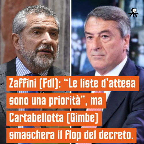 Zaffini (FdI): “Le liste d’attesa sono una priorità”, ma Cartabellotta (Gimbe) smaschera il flop del decreto.